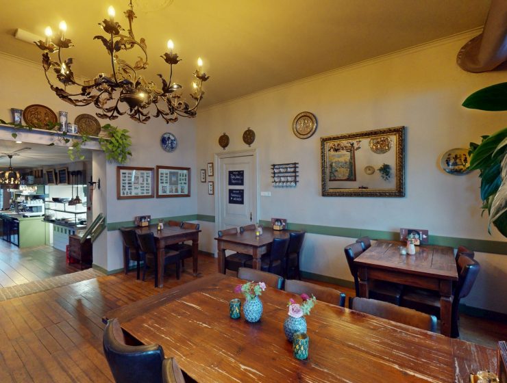 De begane grond bestaat uit het restaurantgedeelte en gedeeltelijke open keuken. Op de 1e verdieping bevindt zich extra verkoopruimte en daarnaast op de 2e verdieping beschikking over extra opslagruimte. Dit biedt mogelijkheden voor verdere uitbreiding of multifunctioneel gebruik.