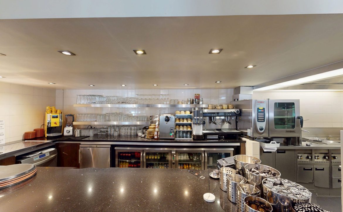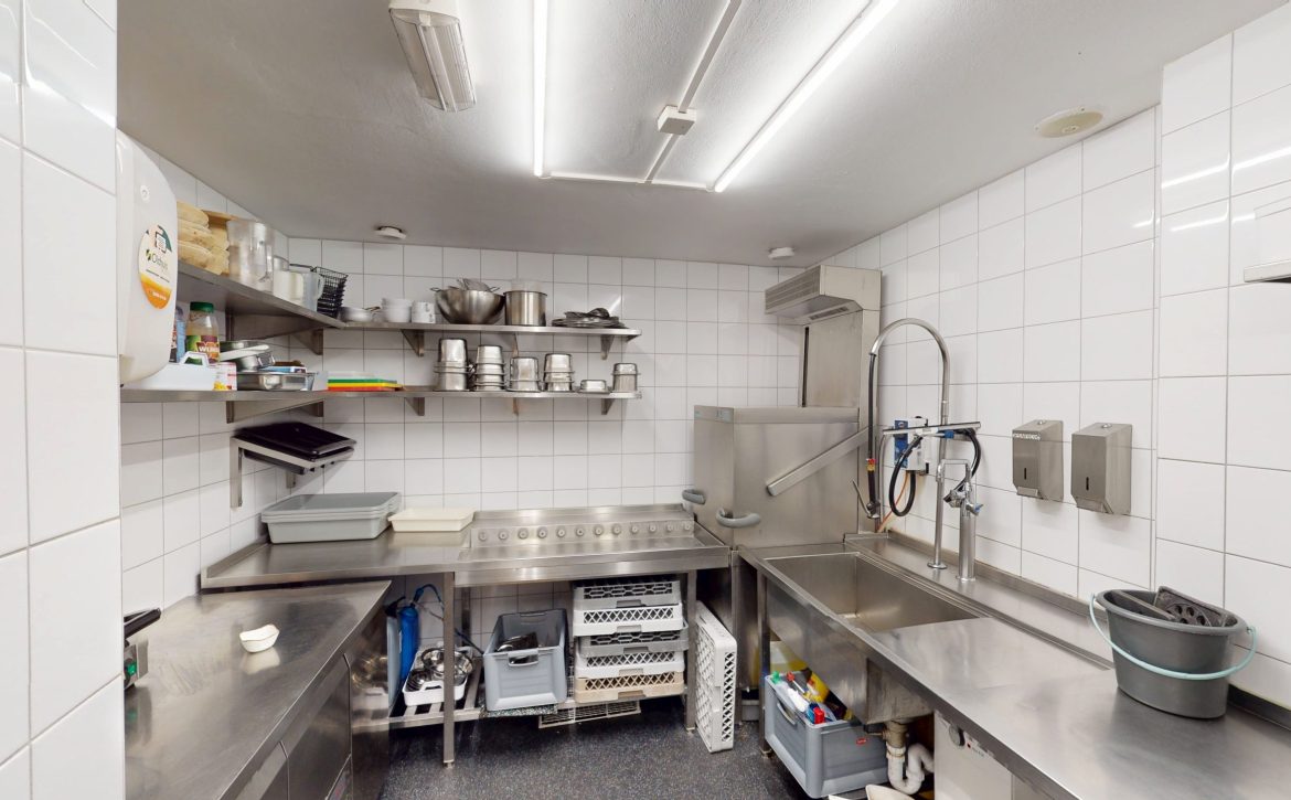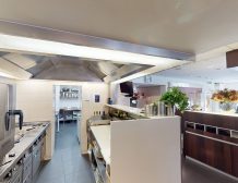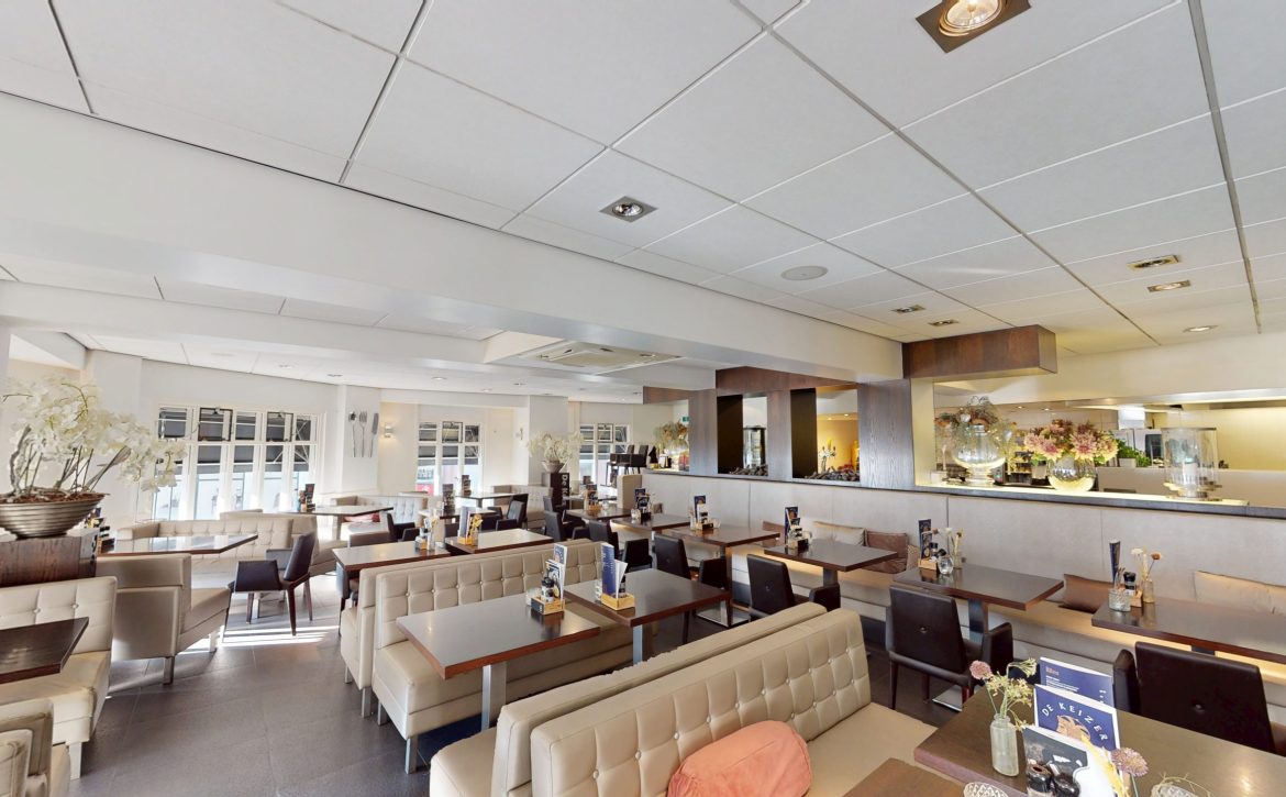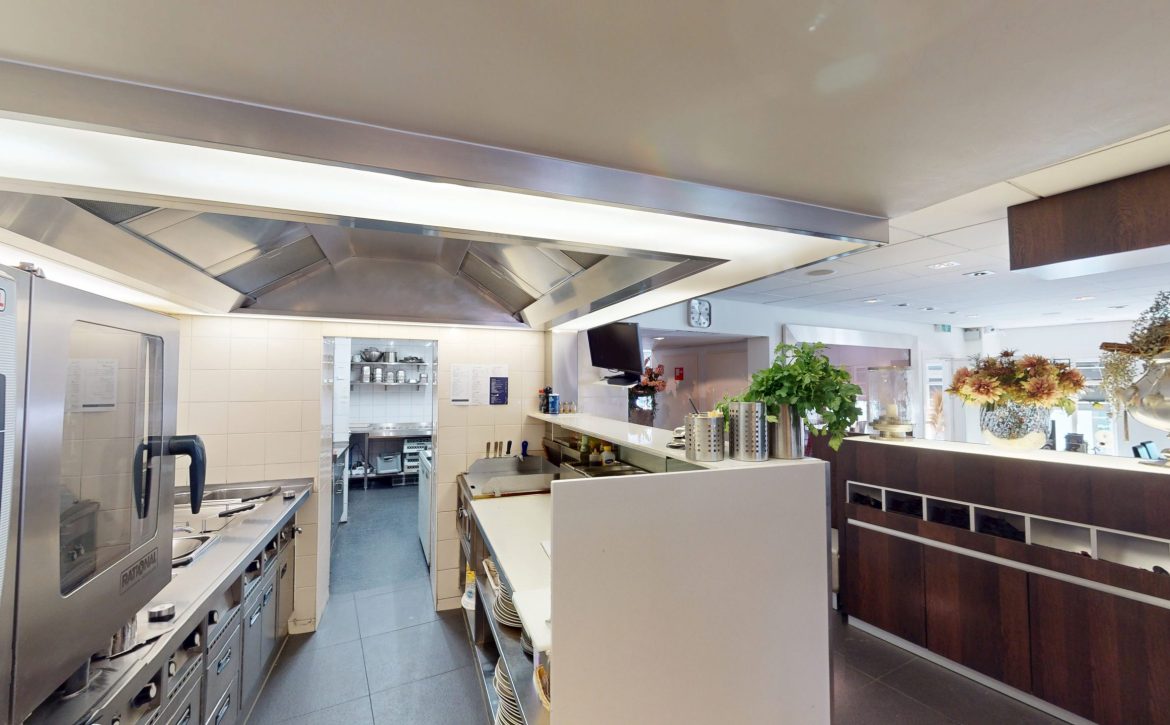 – De 1e etage biedt plaats aan circa 80 gasten in een sfeervolle setting met een open keuken, voorzien van goed onderhouden apparatuur.