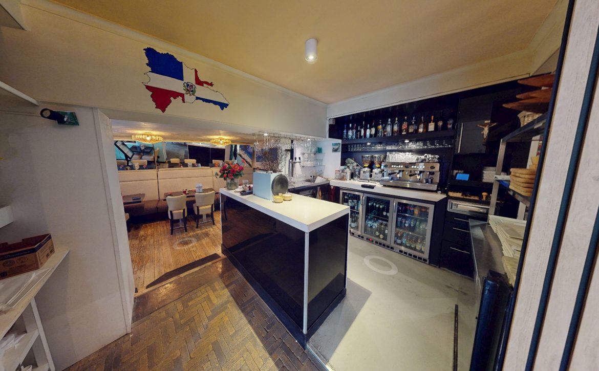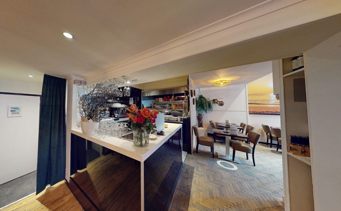 Vanuit de entree bereik je via een tussendeur het gezellig ingerichte restaurant met een centraal gesitueerde bar. Gezien het restaurant uit twee panden bestaat, heb je op deze manier goed overzicht. Daarnaast is een compacte open keuken aanwezig met extra spoelkeuken. De keuken beschikt over professionele apparatuur en is onlangs nog voorzien van nieuwe koelwerkbanken. Achterin de keuken is een kleine ruimte aanwezig naar een aparte spoelkeuken.