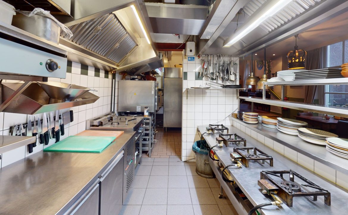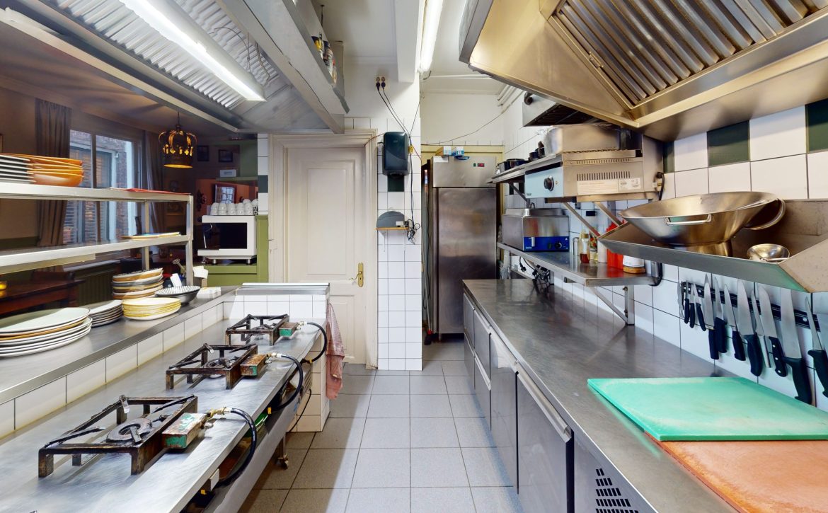 De open keuken vormt het kloppende hart van de zaak en versterkt het gevoel van transparantie en ambacht. Gasten kunnen zien hoe hun gerechten met zorg worden bereid, wat bijdraagt aan een persoonlijke en vertrouwde ervaring.