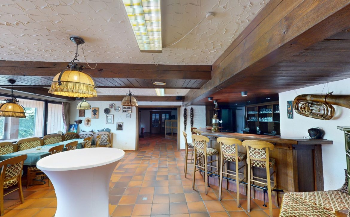 Gezellige stube met kachel, bar, DJ-Booth, en poolruimte