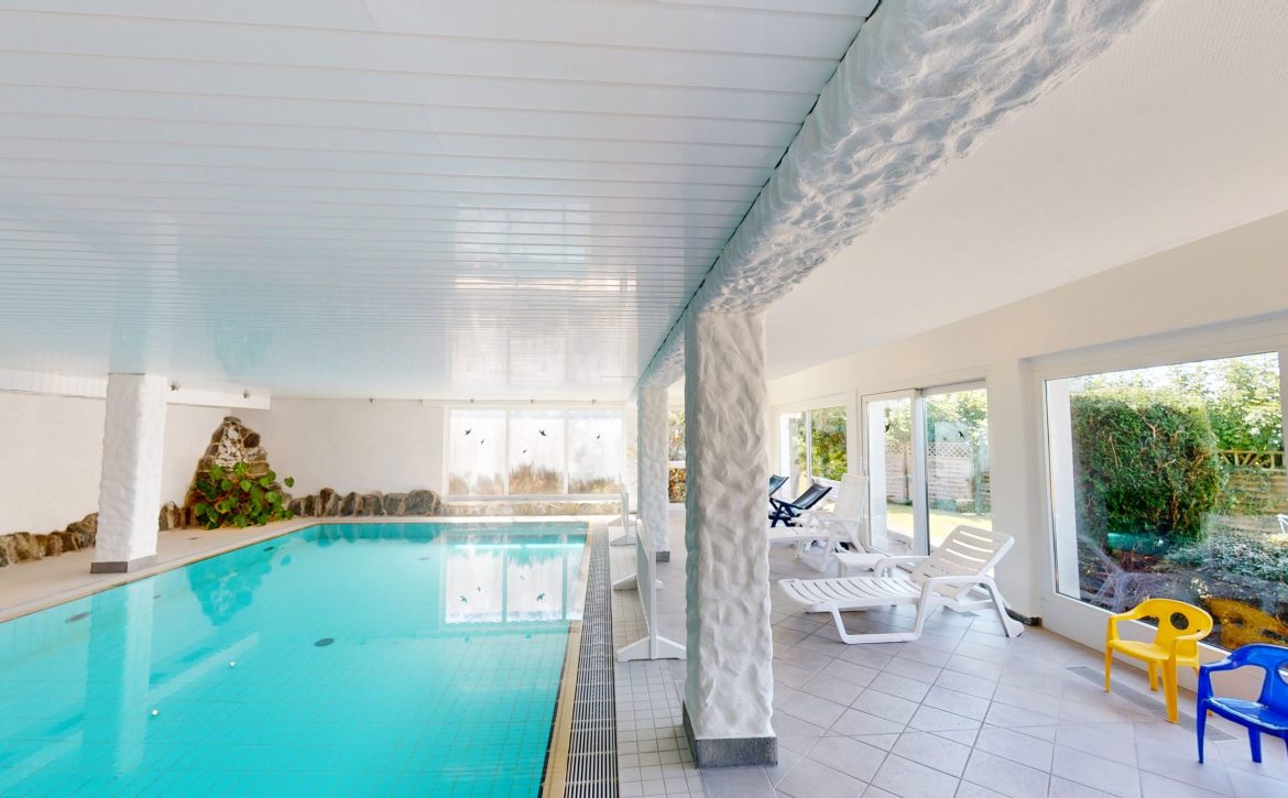 Benedenverdieping met zwembad, solarium en dampbad