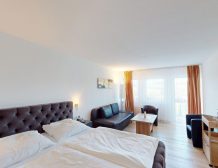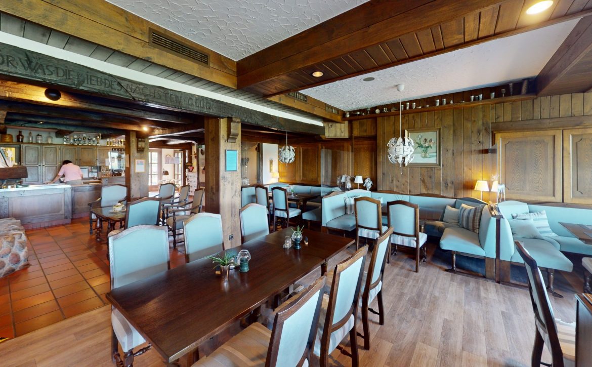 Restaurant & keuken: panoramisch restaurant met verse streekproducten – eigen forel uit visvijver, huisgemaakte honing, kaas‐spätzle, en internationale gerechten.