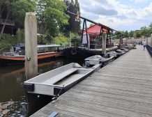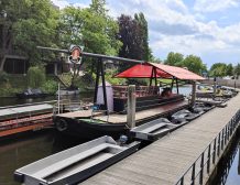 Het opstapponton van 20×5 meter biedt alles wat u nodig heeft voor een efficiënte exploitatie: een onderdekse keuken, een opslagruimte van maar liefst 70 m², en op het bovendek een comfortabele wachtruimte en aanlegplaatsen. Dankzij het opvallende oranje zeil is de zichtbaarheid van het ponton optimaal, wat bijdraagt aan de herkenbaarheid van het bedrijf. Met een eigen drinkwateraansluiting en driefasige stroomvoorziening is de infrastructuur compleet en klaar voor gebruik.