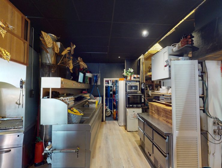 Op de begane grond is achterin de horecazaak een open keuken gesitueerd voorzien van goed onderhouden en moderne apparatuur. Zowel op de begane grond als op de 1e verdieping is totaal plaats voor 60 gasten. Daarnaast heeft het beschikking over een zonnig terras met 60 zitplaatsen.